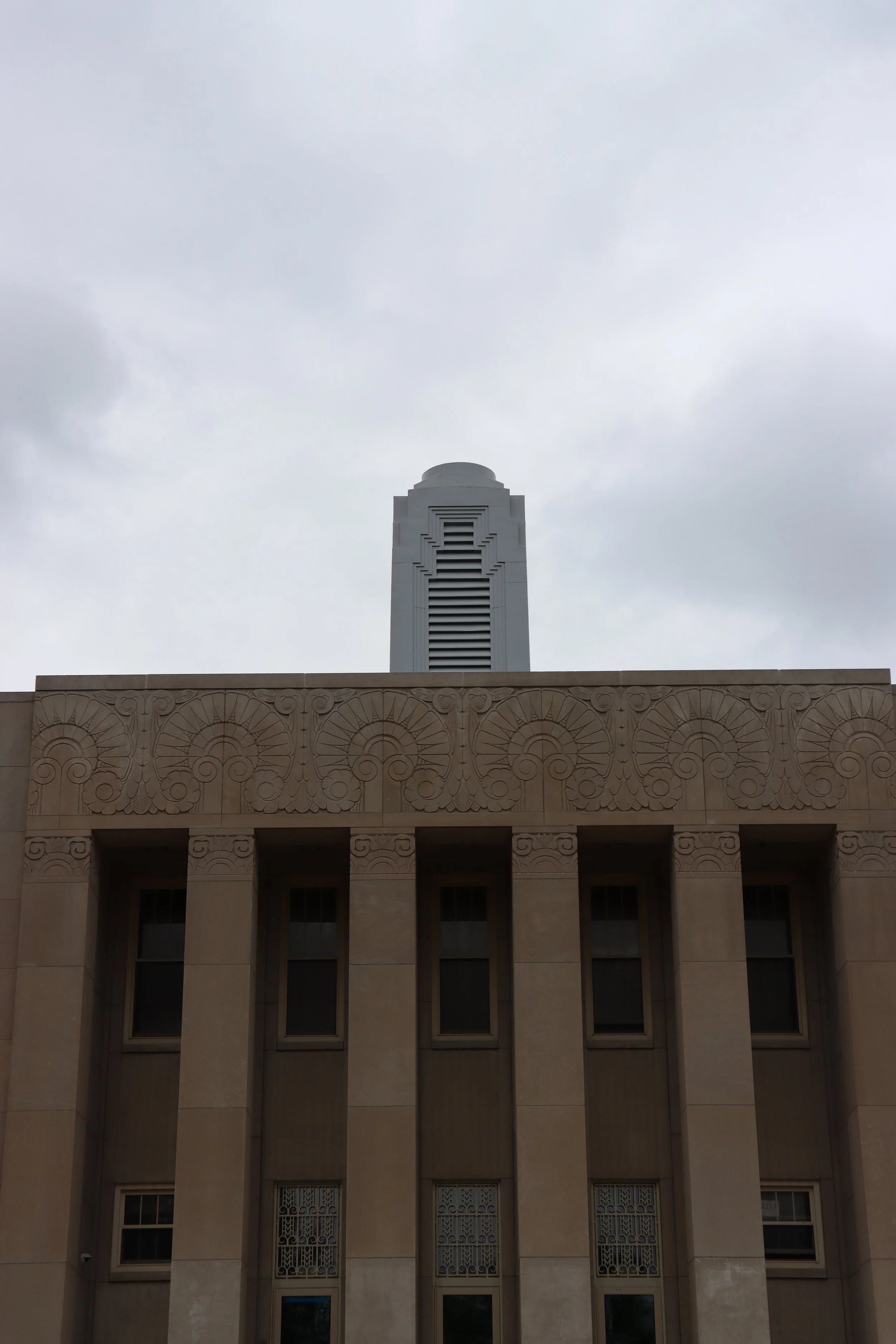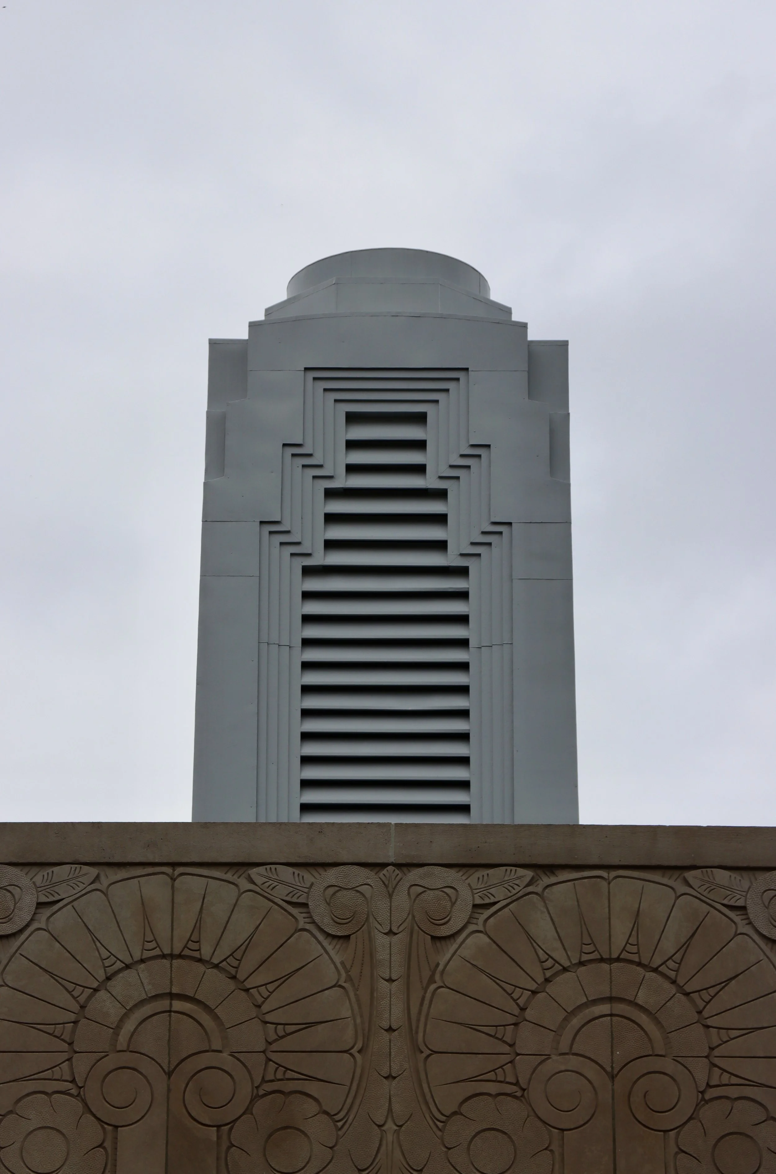 Barker is a recreation of the art deco finial on the roof of the Sedgwick Middle School in West Hartford, Connecticut. The building was designed by architect Russel Barker.